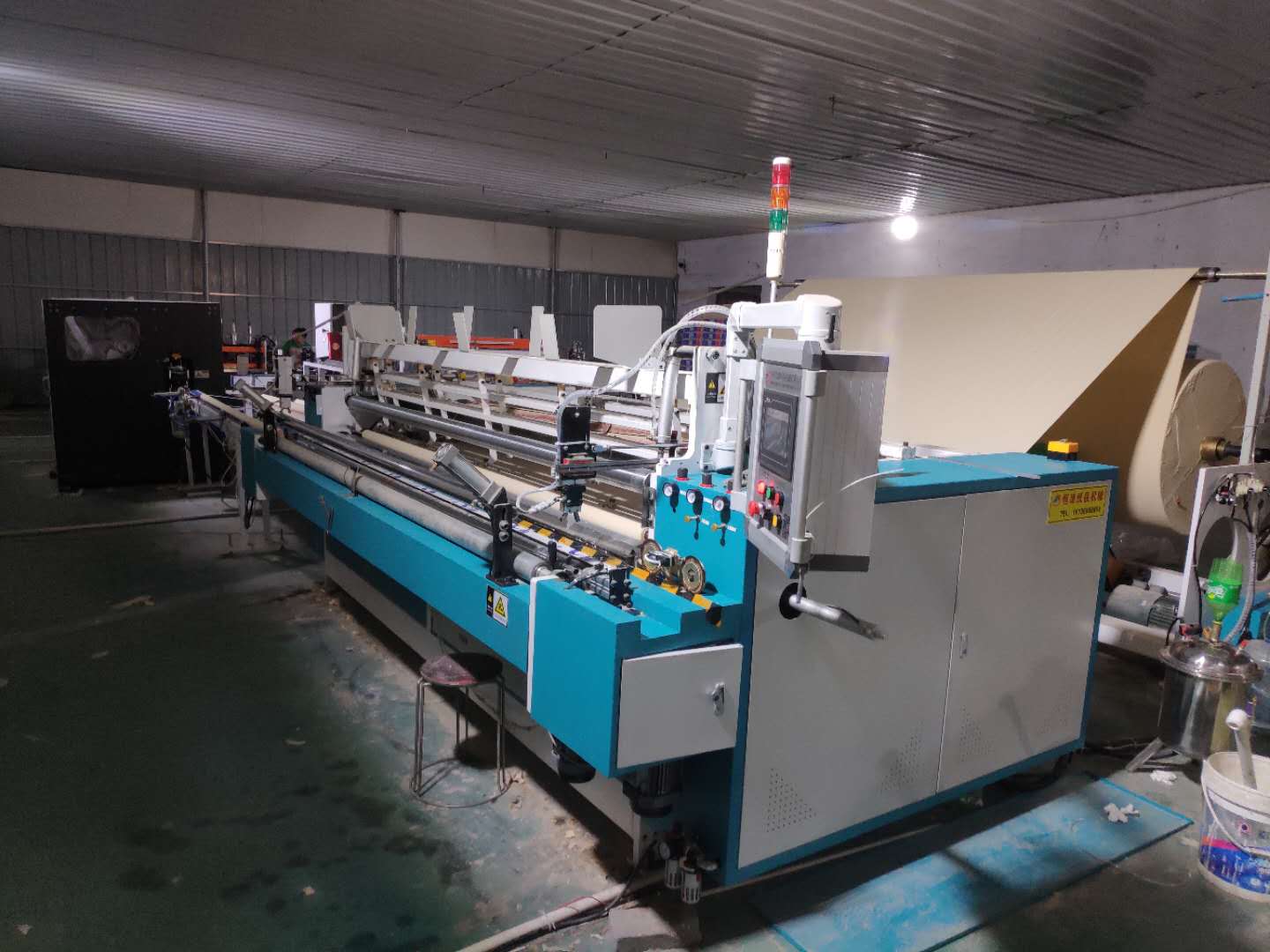安徽肥西縣張總在2016.7.21號(hào)在恒源紙品機(jī)械訂購一套1880衛(wèi)生紙復(fù)卷機(jī),僅僅兩年時(shí)間兩年,張總的衛(wèi)生紙加工廠已達(dá)到月銷百噸,使用原來的1880復(fù)卷機(jī)生產(chǎn)產(chǎn)能嚴(yán)重不足,所以又添加新設(shè)備——全自…......